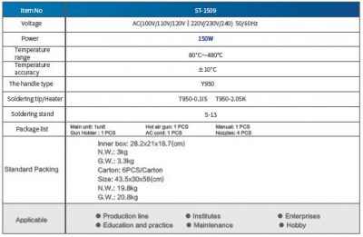 - Compatible with various type of soldering tools .
