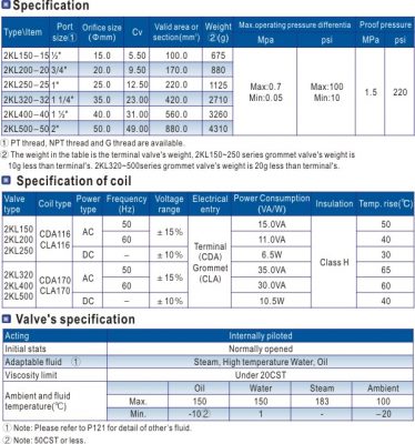 1. Indirect acting(Internal pilot) and normally opened type 2/2 way solenoid valve. Its high sensibility allows it to change direction quickly.