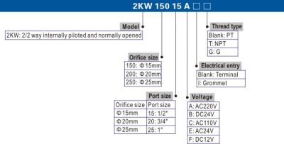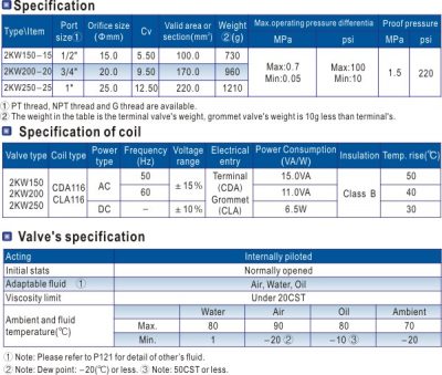 - 2/2 way internally piloted and normally opened type solenoid valve can quickly change the direction and has large volume.