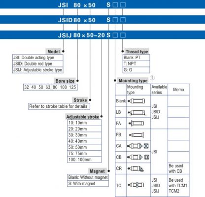4.Compared with ISO15552 standard cylinder, the cylinder of JSI series with the same cylinder diameter is shorter.