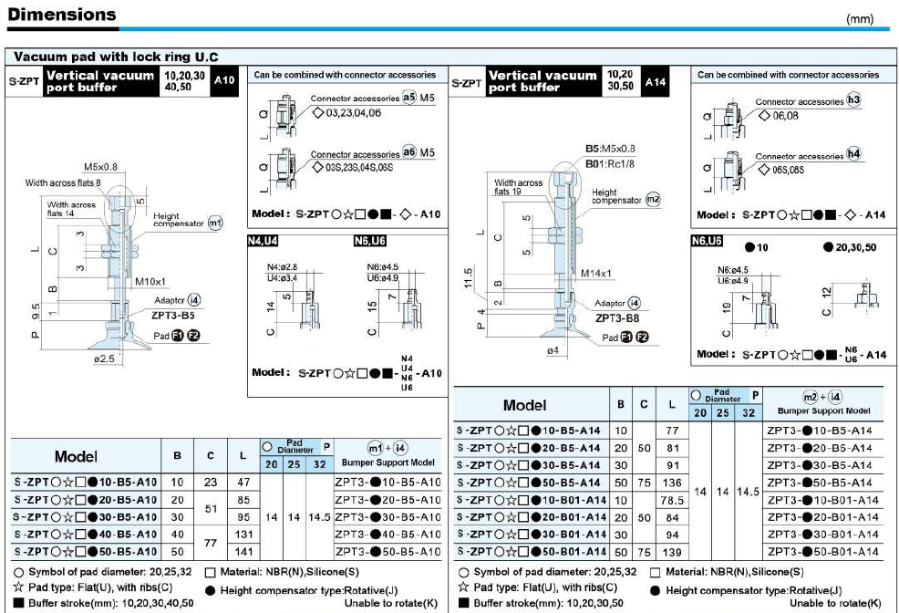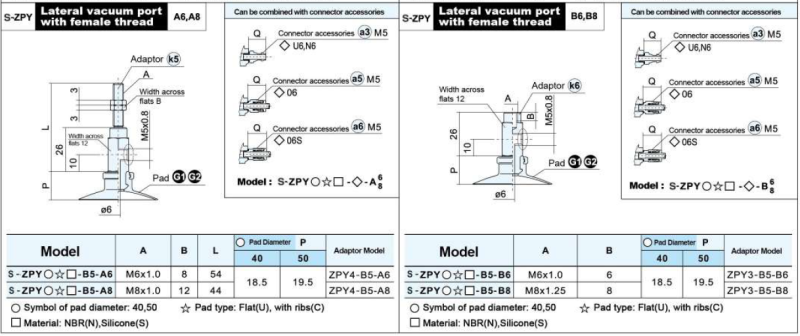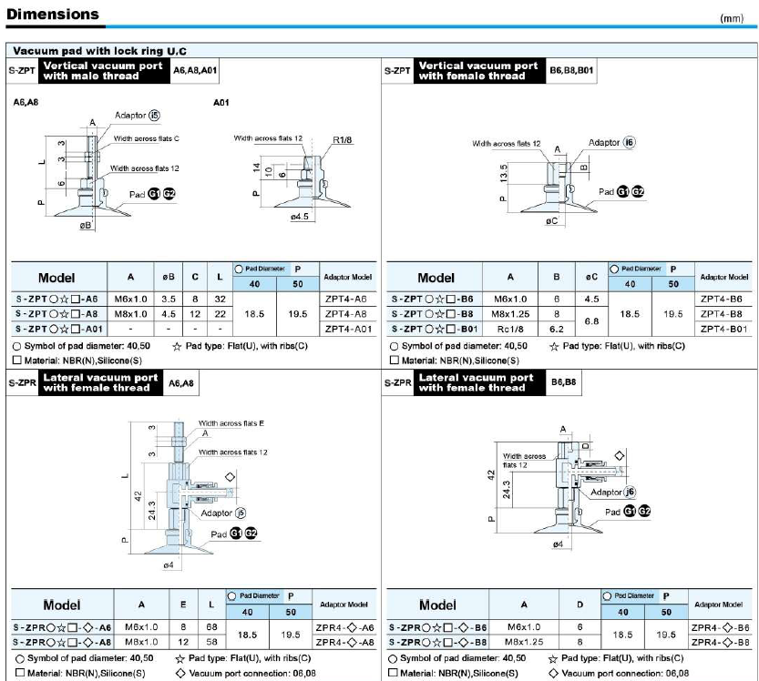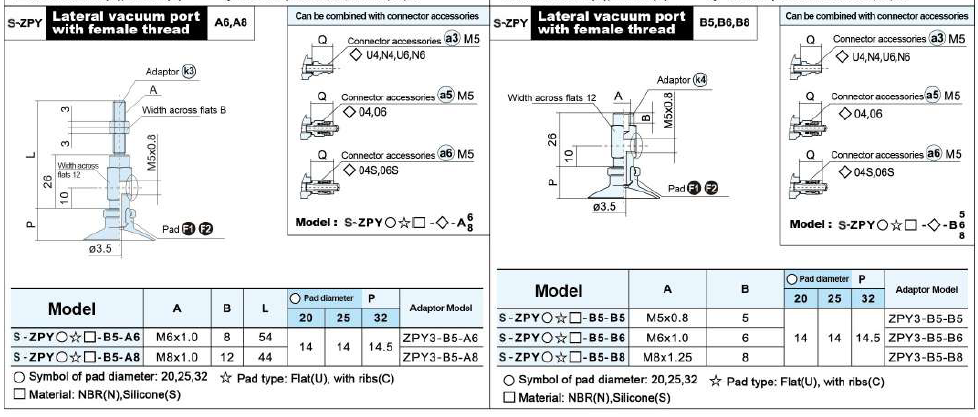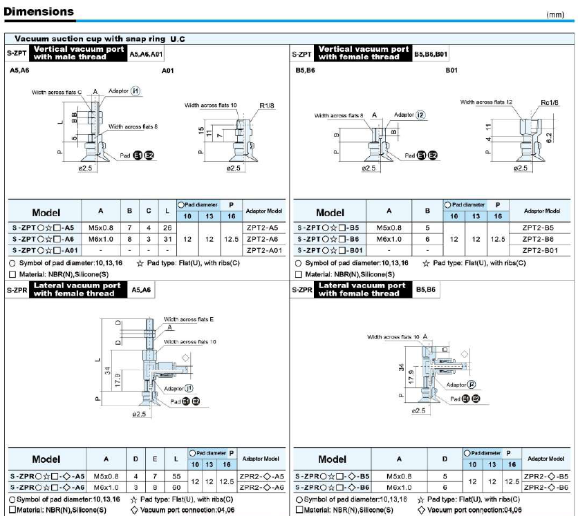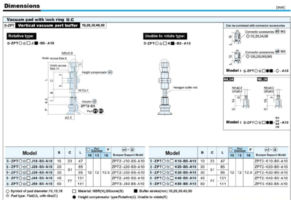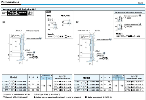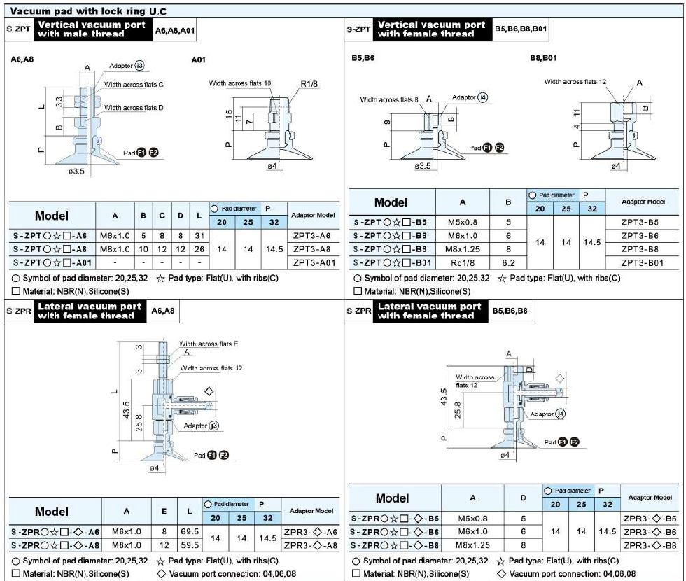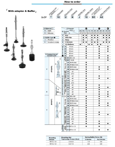 S-ZP Series – Flat Type (U) Suction Cup With The Adapter&Buffer With Locking Fitting