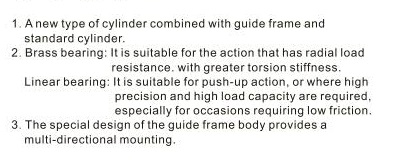 Product Feature: 1.JIS standard is implemented. 2. It belongs to mini cylinder that has compact structure, small volume and light weight. 3. The guide precision of piston rod is high and no additional lubricant is needed. 4. Screw holes are designed for mounting directly at the front cover without any accessories. 5.Piston rod stainless steel [...]